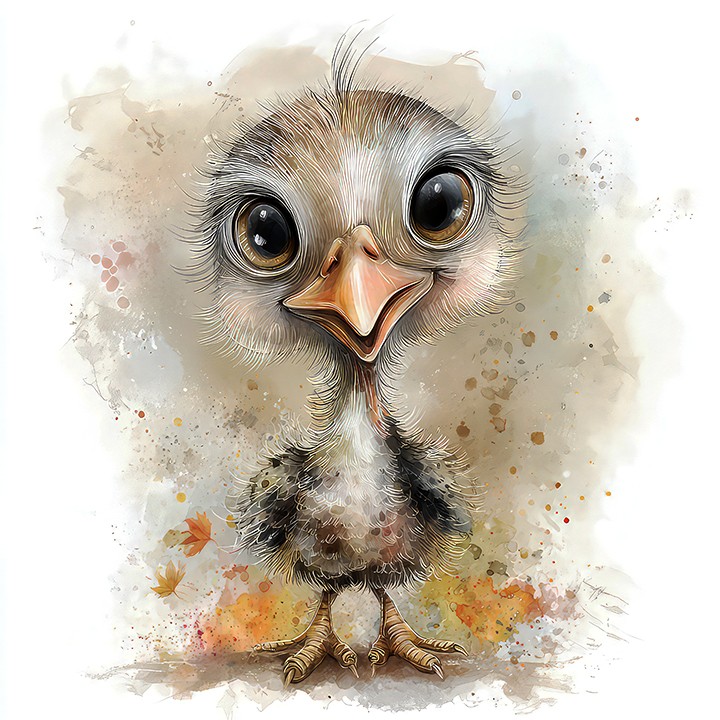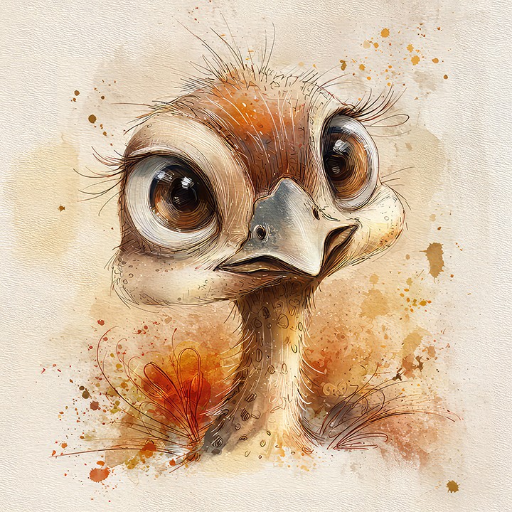 digital watercolor. highly detailed, cute watercolor cartoon of an adorable baby turkey, realistic yet softly stylized for children, with...