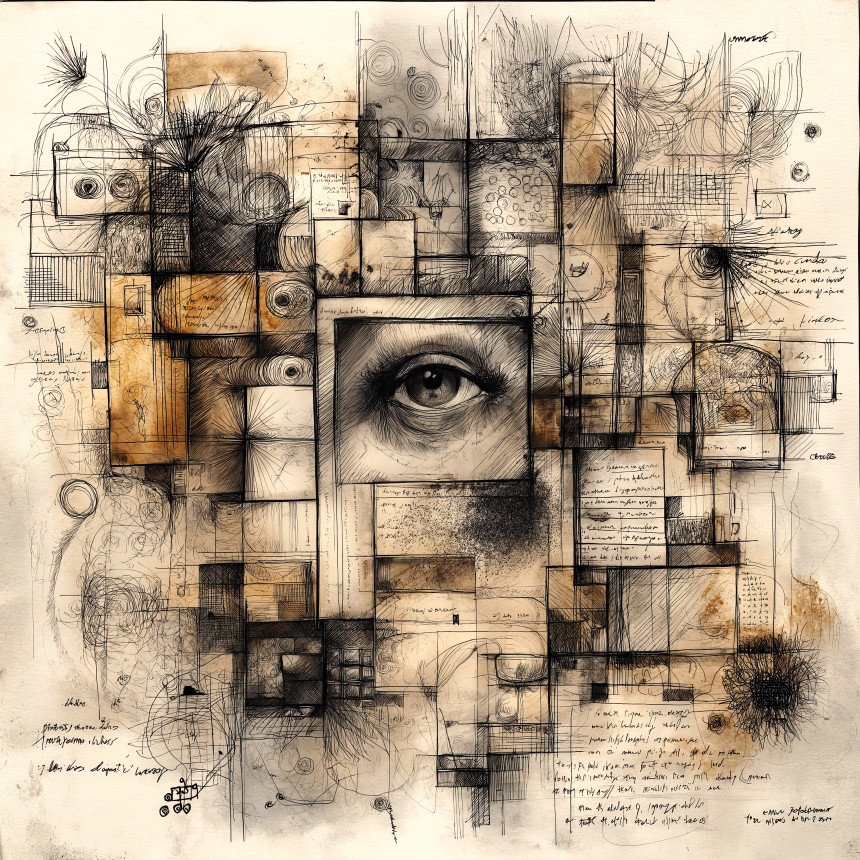 generative. doodle as in to draw, scribble, and/or improvise idly. various geometric shapes and notes on a textured surface, suggesting a...